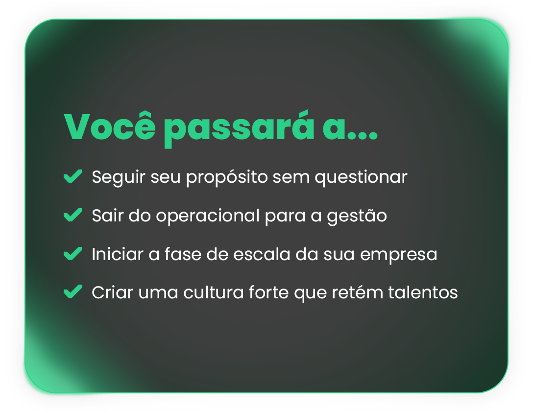 Não. As mentorias individuais e em grupo são projetadas para empreendedores e empresários de diversos tamanhos. O foco está em quem deseja crescer de forma estratégica, independentemente do número de colaboradores. A mentoria é o caminho para você sair do operacional, criar processos claros e construir uma cultura que retém talentos, permitindo que seu negócio evolua de forma sustentável.